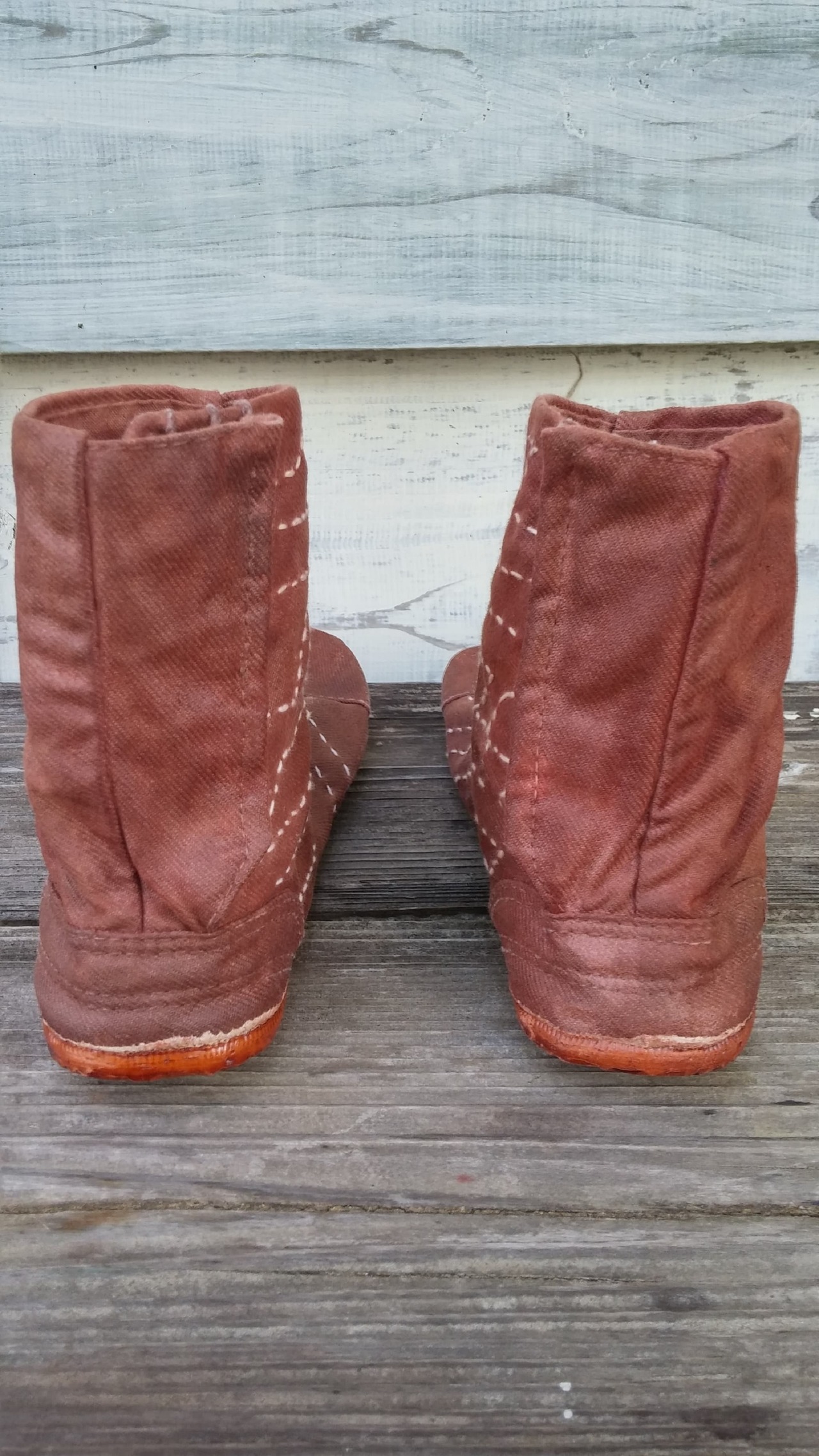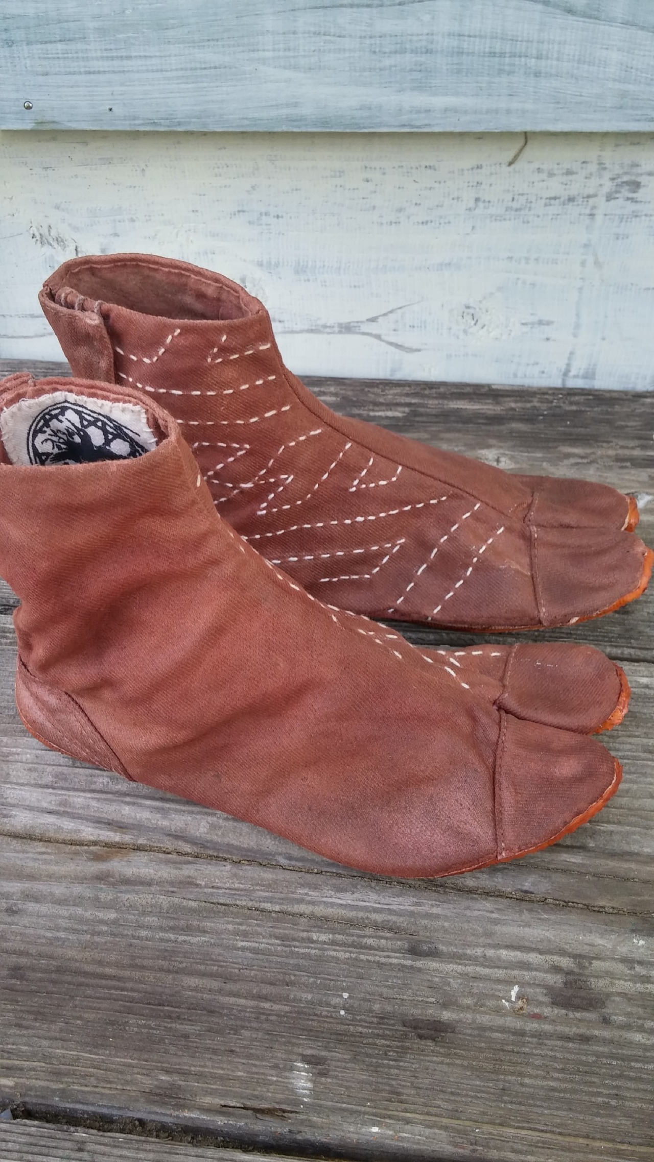 Boro-tabi 「サヤガタ-sayagata」 寸法:八寸(24cm) 柿渋染め×ベンガラ染め(土染め)