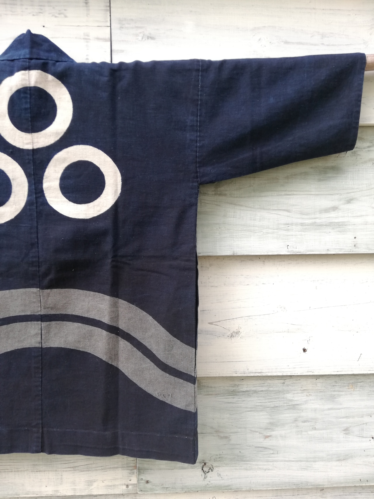 丸に三つ 藍染職人半纏-indigo shokunin hunten