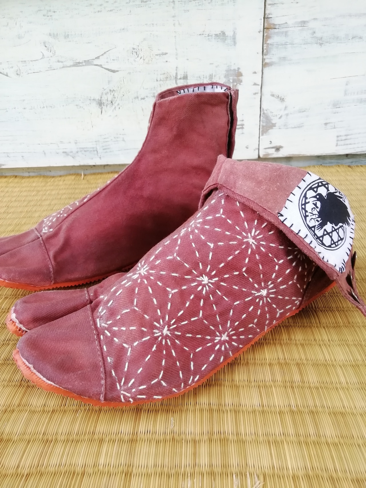 Boro-tabi 八寸七分(26cm)「オオヌサ-oonusa」ベンガラ染め×柿渋染め