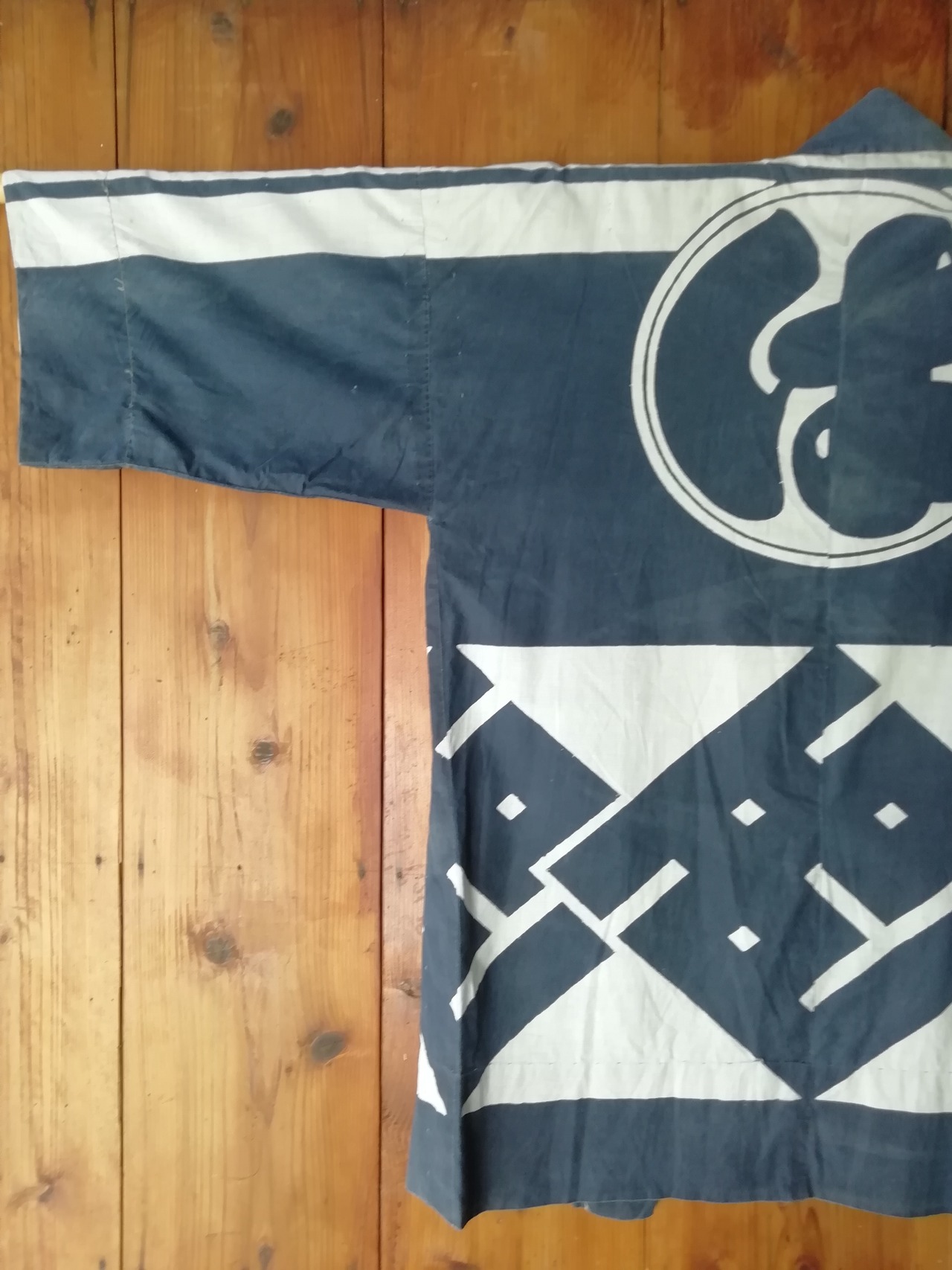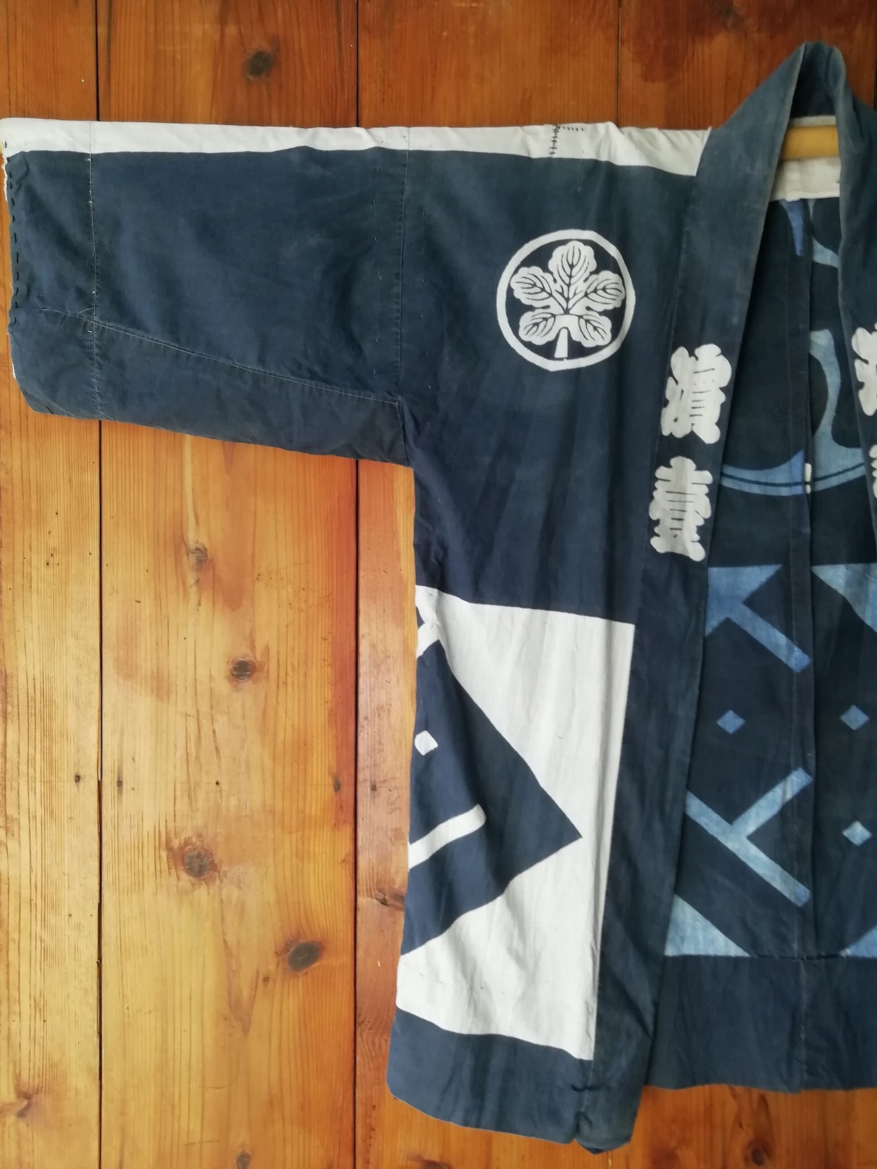古い藍染の職人半纏です。
