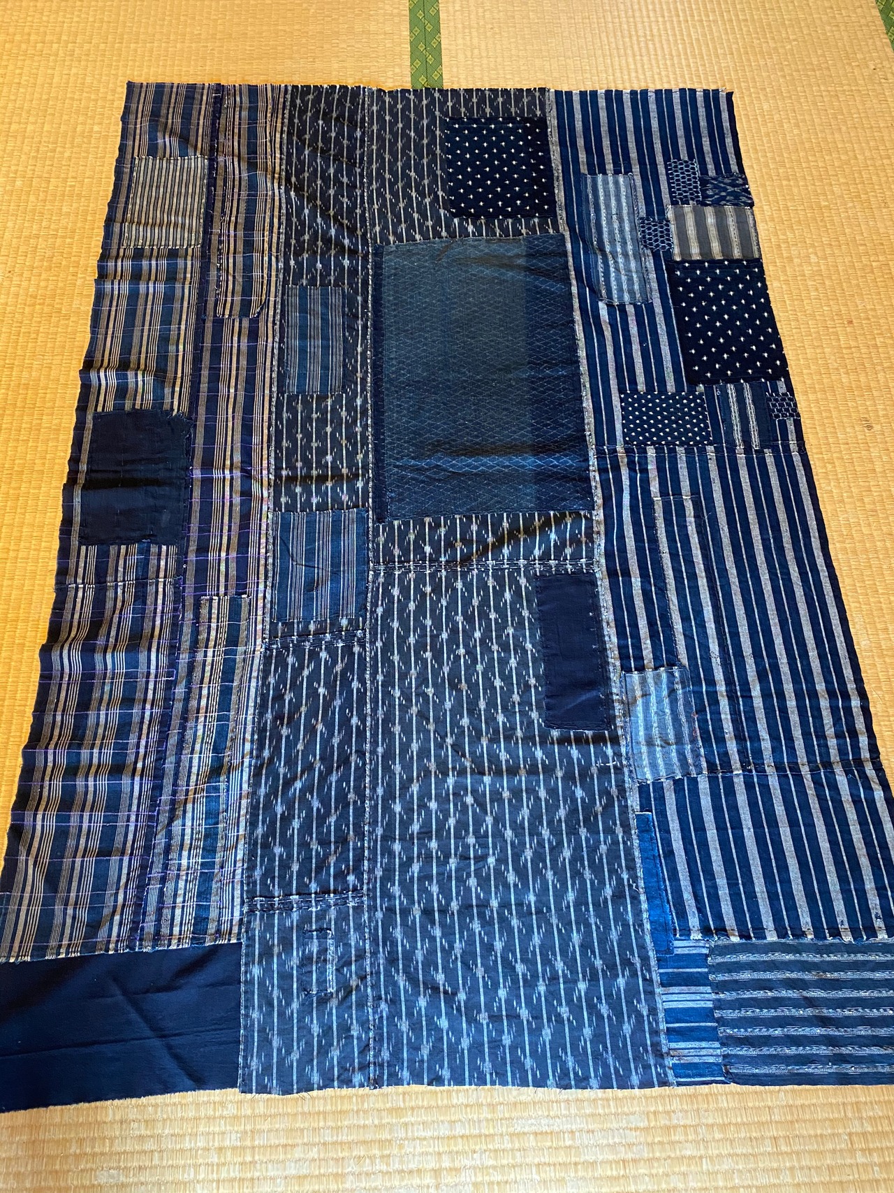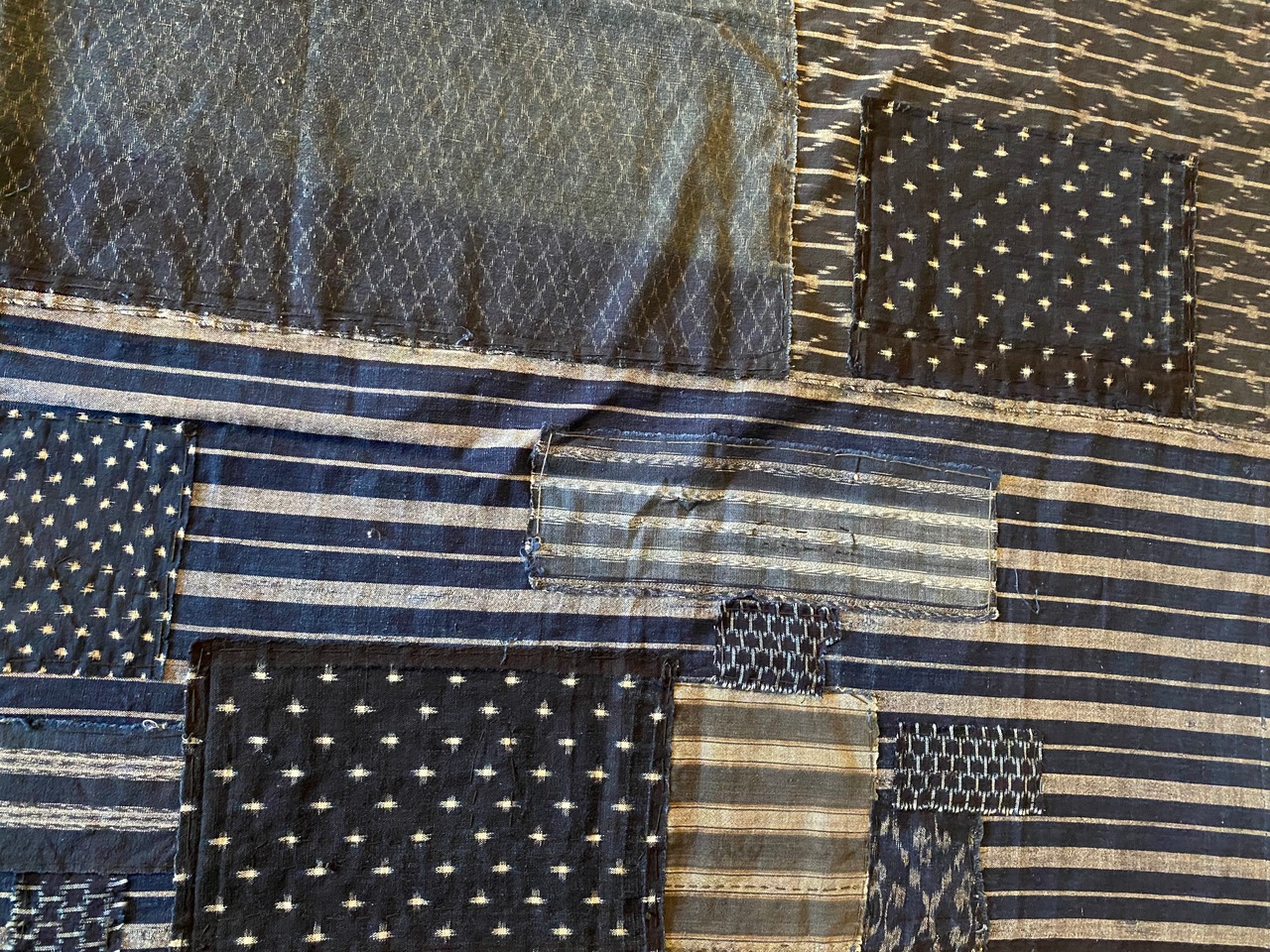 襤褸縞藍染古布-Boro stripe indigo old cross