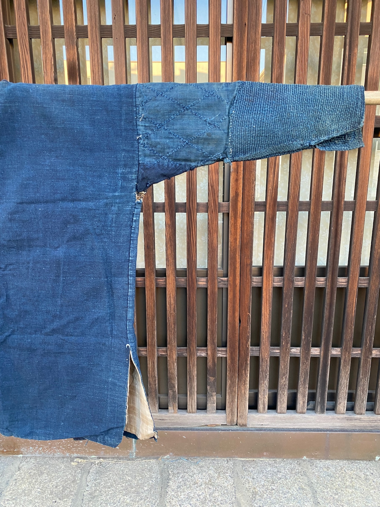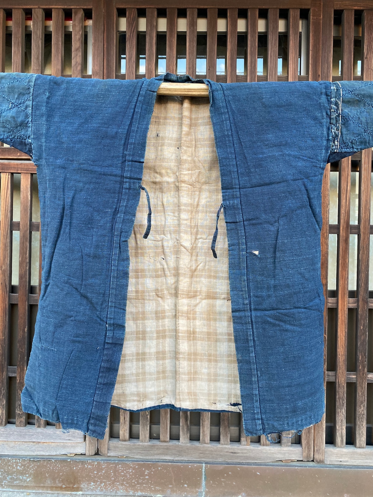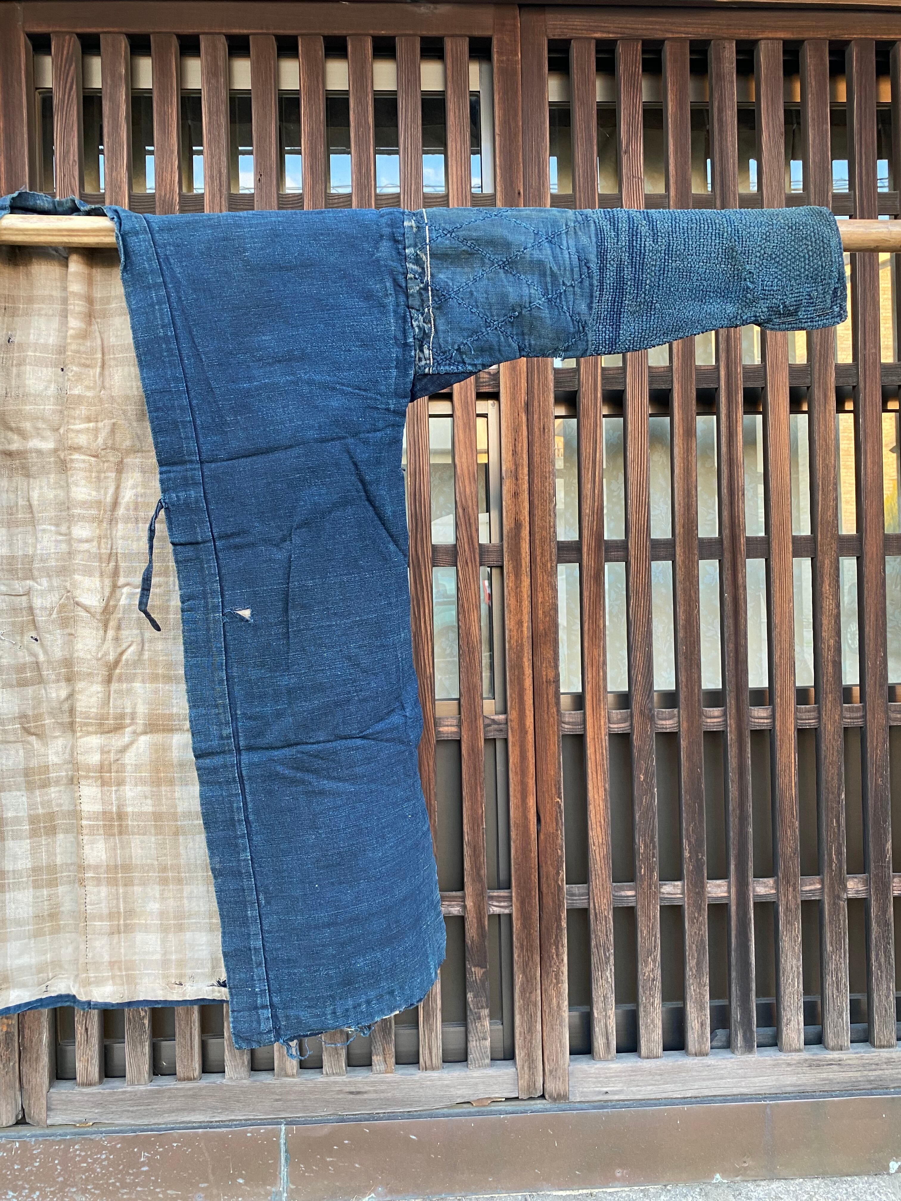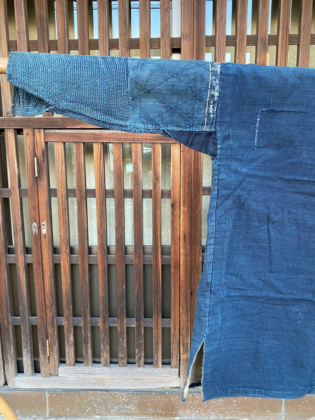 藍染刺し子 鉄砲袖 野良着-Indigo sashiko pistolsleeve noragi