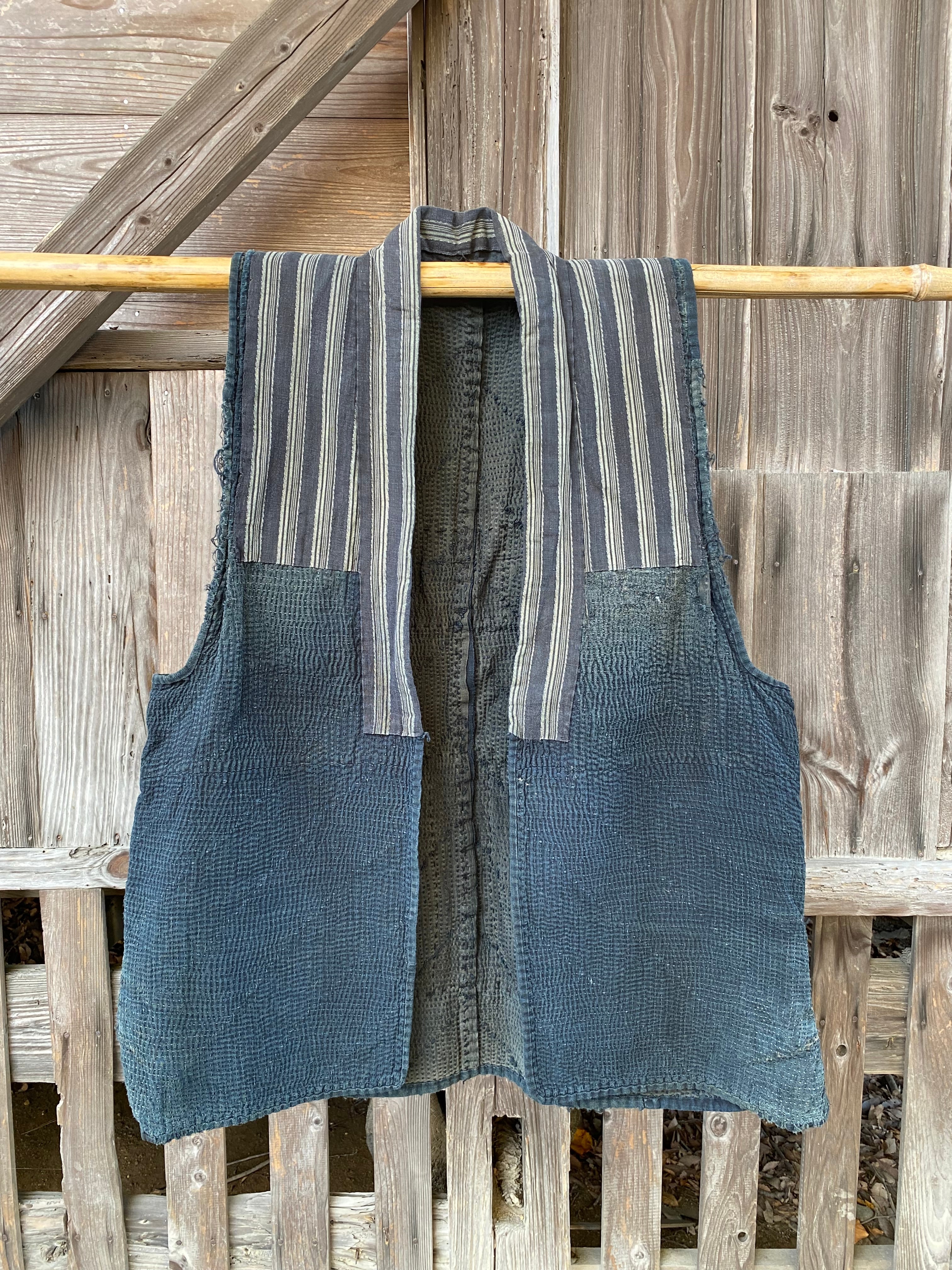 庄内刺し子袖無し野良着-Shounai sashiko sleeveless noragi