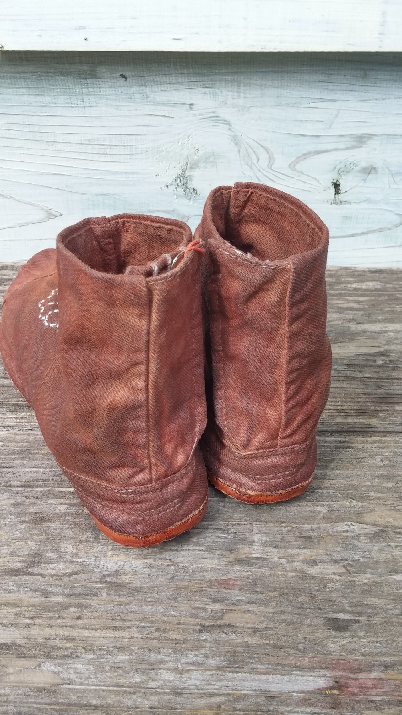 日本古来から伝わるベンガラ染め(土染め)の上から柿渋染めを重ねて染めております。