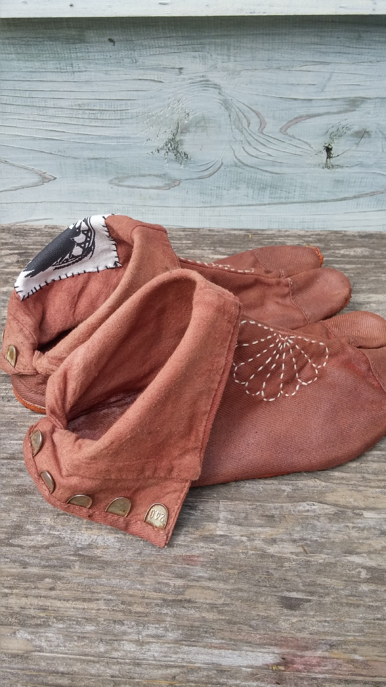 Boro-tabi 八寸(24cm)「イヤサカ-iyasaka」柿渋染め+ベンガラ染め