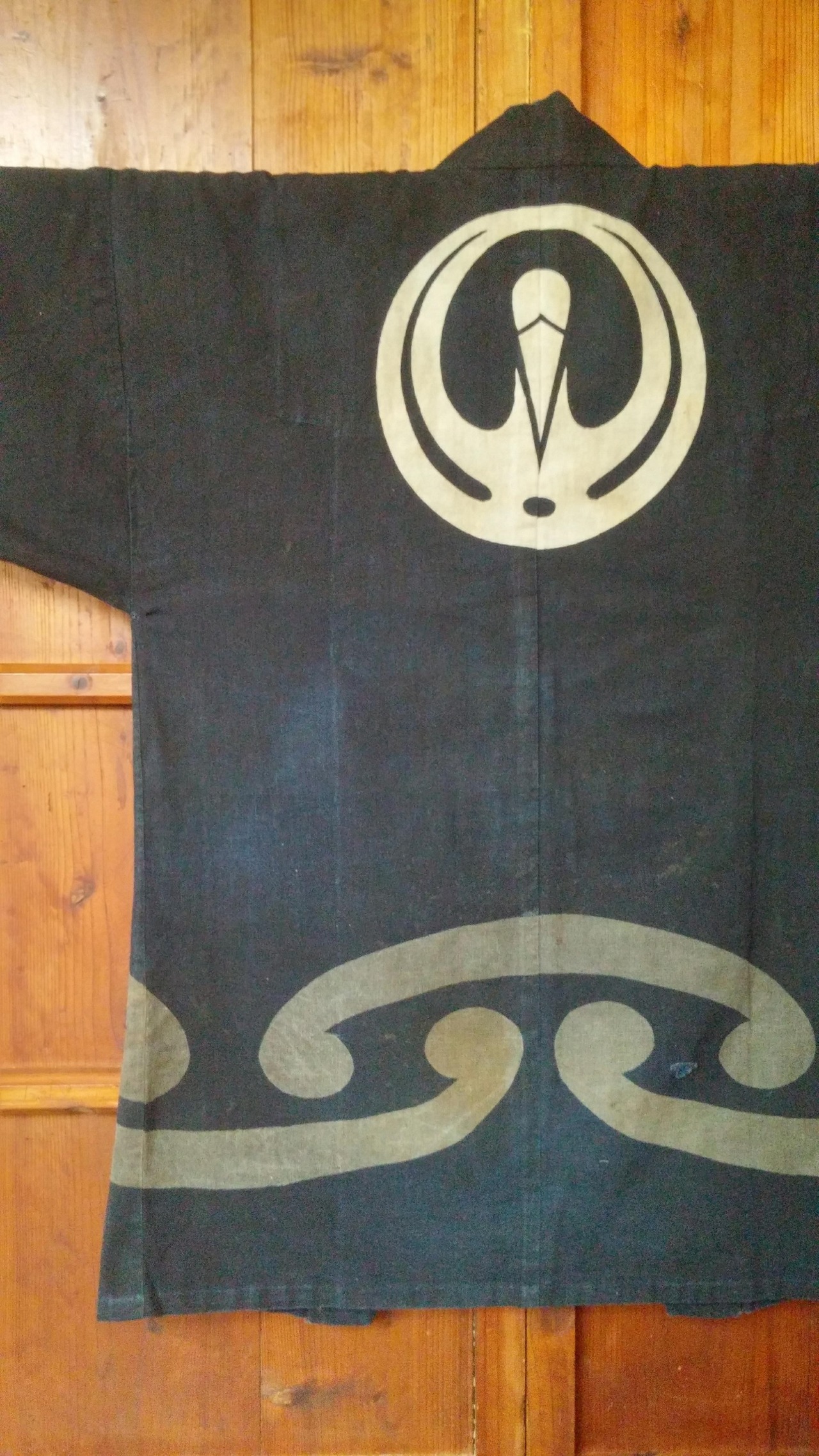 背中の鶴のデザインがとてもハイセンスな逸品です。裏地の藍染めも良い色しております。